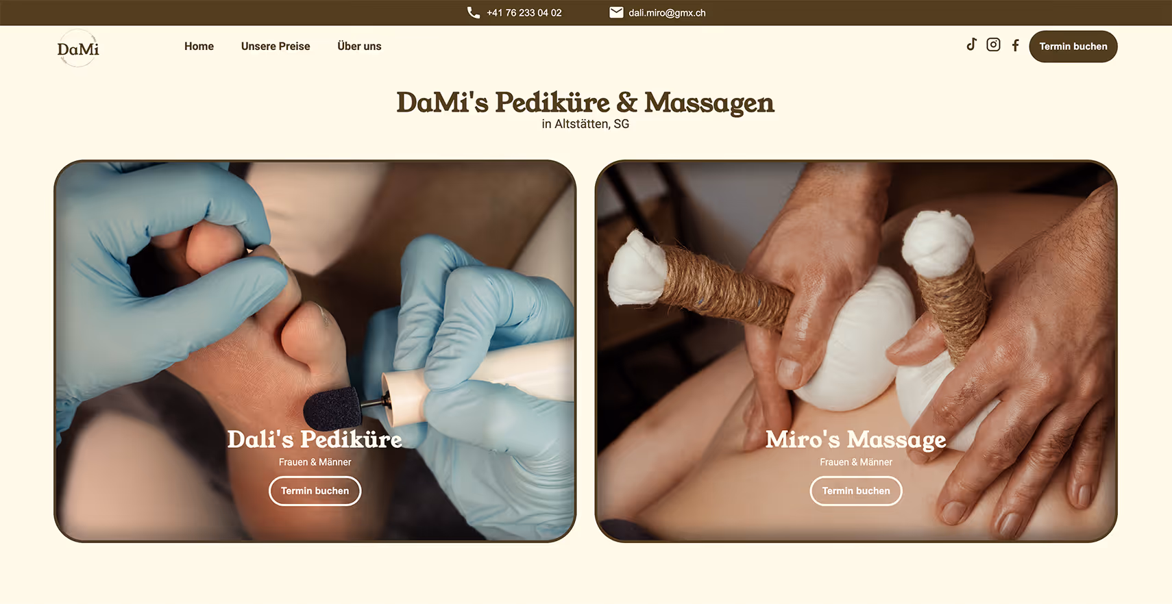 Dali und Miro eröffneten Anfang 2026 ihr Kosmetik- und Wellnessstudio in Altstätten. Obwohl sie bereits erste Kundschaft hatten, fehlte ihnen eine professionelle Webseite, über die sich potenzielle Kunden informieren und Termine buchen konnten.Ziel war es, eine moderne Online-Präsenz zu schaffen, die Vertrauen aufbaut und gleichzeitig eine einfache Terminbuchung ermöglicht.